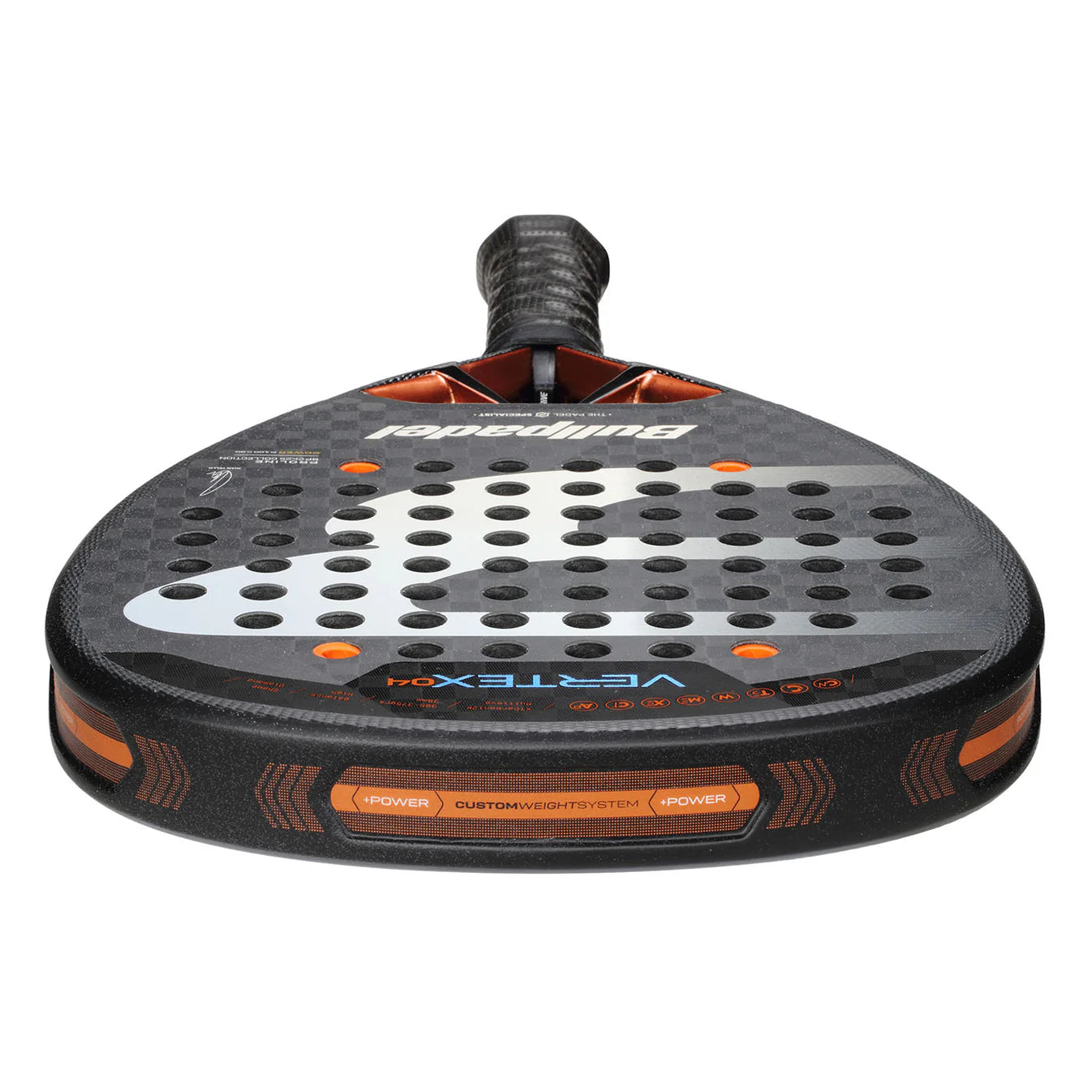The Bullpadel Vertex 04 is designed for players who demand raw power, fast ball output, and a crisp, controlled feel. Built with an oversized diamond shape and a high balance, it is engineered for aggressive play — ideal for players who dominate the attack and finish points at the net.