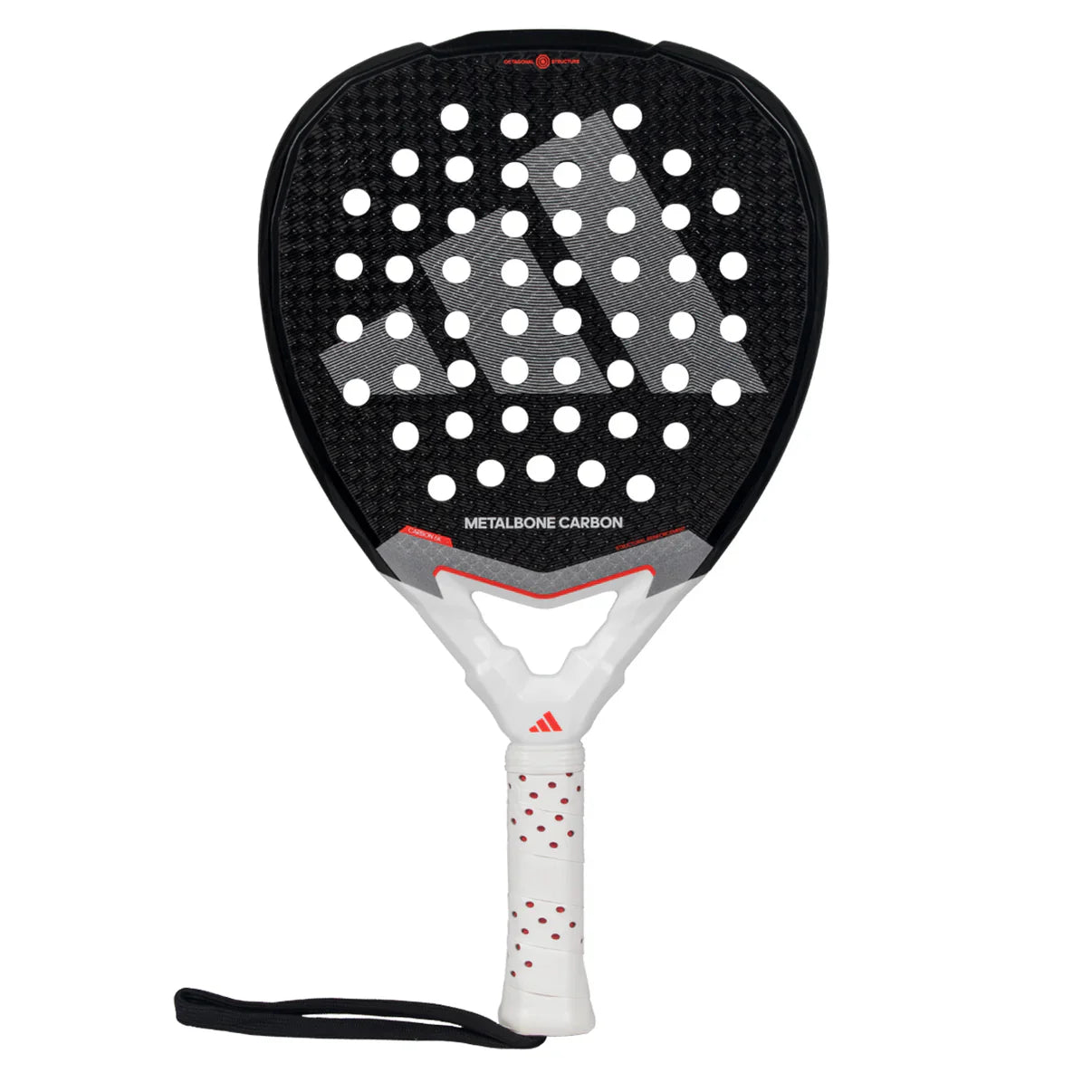 The Metalbone Carbon 3.4 is a Round shape racket that is the ultimate choice for serious players seeking unparalleled control. With a perfect blend of craftsmanship and advanced technology, this Padel racket promises to elevate your game. This racket boasts two cutting-edge features - the extended Power Extra Grip handle and the Low Poly polyhedral design in the core and frame that enhance inertia and rigidity, delivering unmatched power in every shot.Â